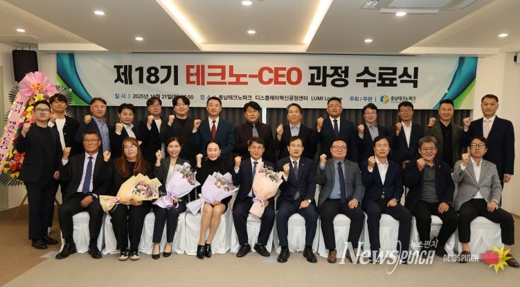 뉴스펀치 김길룡 기자 | (재)충남테크노파크는 ‘제18기 테크노 -CEO 과정 수료식’을 21일 충남TP 디스플레이 혁신공정센터에서 개최했다고 밝혔다.