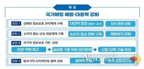 뉴스펀치 조평훈 기자 | 과학기술정보통신부와 관계부처는 전방위적인 해킹 사고로 국민 불안이 가속화되는 현 상황을 신속히 극복하고 국가 전반의 정보보호 역량을 강화하기 위해 '범부처 정보보호 종합대책'을 수립하여 10월 22일 대국민 브리핑을 통해 발표했다.