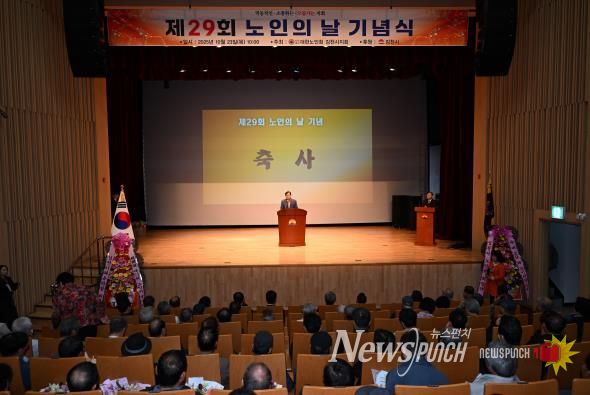 뉴스펀치 김길룡 기자 | 김천시는 23일, 대한노인회 김천시지회를 주최로 하여 김천시립문화회관에서 지역 어르신 300명이 참석한 가운데 ‘제29회 노인의 날 기념식’을 개최했다.