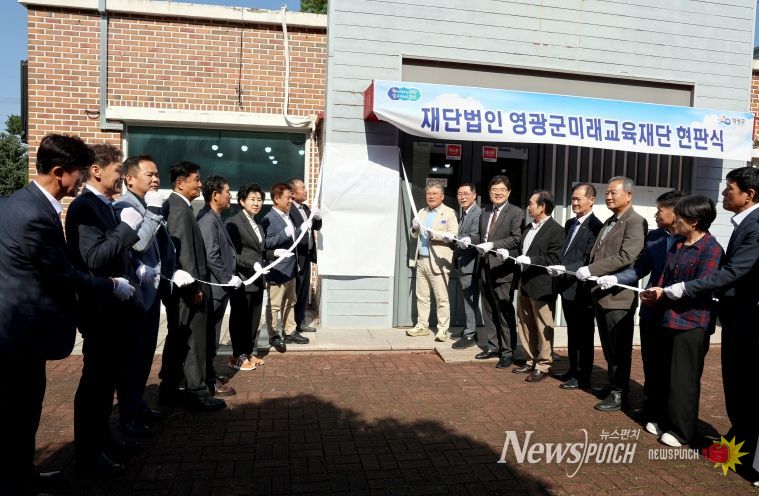 뉴스펀치 김길룡 기자 | (재)영광군미래교육재단(이사장 장세일)이 지난 10월 22일 임시사무공간에서 현판식을 개최했다.