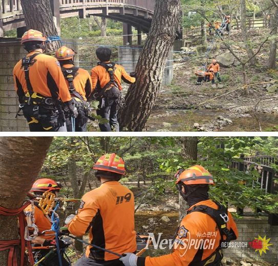 뉴스펀치 김길룡 기자 | 서산소방서은 20일부터 23일까지 소방서 훈련탑과 가야산 용현계곡에서 가을철 산악사고 대비 특별구조훈련을 실시했다.