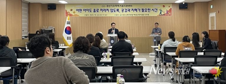 뉴스펀치 김길룡 기자 | 경산교육지원청 경산기초학력거점지원센터는 2025년 10월 22일(수) 경산교육지원청 학생교육지원관 2강당에서 경산·청도 지역 초등학교 학부모 80여 명을 대상으로 학부모 연수회를 열었다.
