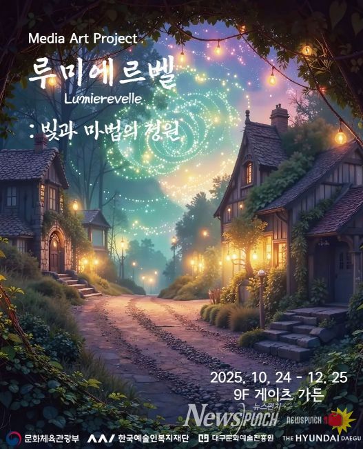 뉴스펀치 조평훈 기자 | 대구문화예술진흥원 문화예술본부는 ‘2025 예술인파견지원사업–예술로 대구’의 일환으로, ‘더현대 대구’와 협력해 추진하는 미디어아트 프로젝트 ‘루미에르벨(Lumierevelle): 빛과 마법의 정원’을 10월 24일 오후 5시 30분부터 개막한다.