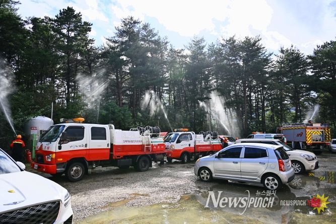 산불 진화 헬기를 포함한 장비 40여 대도 동원돼 민‧관‧군이 함께하는 실전형 대응 훈련으로 진행됐다.