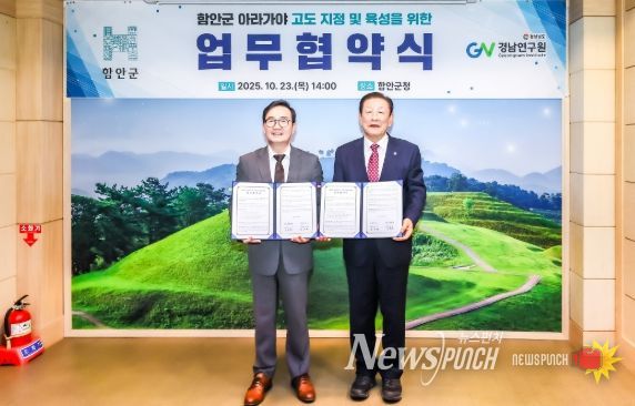 함안군(군수 조근제)은 23일 경남연구원(원장 오동호)과 함께 ‘아라가야 왕도 함안의 고도 지정 및 육성’을 위한 업무협약을 체결했다고 밝혔다.