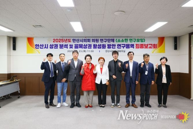 뉴스펀치 김길룡 기자 | 안산시의회 의원연구단체 ‘소소한 연구모임(대표의원 현옥순)’이 지난 23일 의회 대회의실에서 안산 골목상권의 지속가능한 성장 방안을 모색한 연구용역 최종보고회를 개최했다.