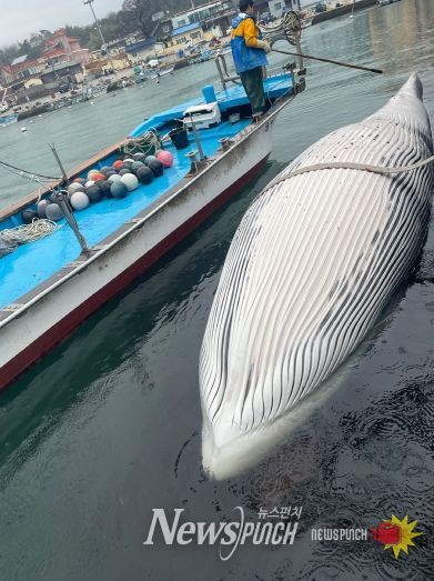 뉴스펀치 임정용 기자 | 울산해양경찰서는 14일 오전11시46분경 부산 기장군 동백항 인근 해상에서 양식장 그물에 참고래 1 마리가 혼획 됐다고 밝혔다.