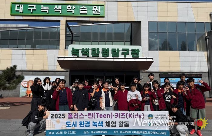 뉴스펀치 조평훈 기자 | 대구광역시 자치경찰위원회는 10월 25일, 대구녹색학습원에서 ‘폴리스‑틴(Teen)·키즈(Kids)’ 5기 회원 59명을 대상으로 ‘도시환경 녹색 체험활동’ 프로그램을 운영했다.