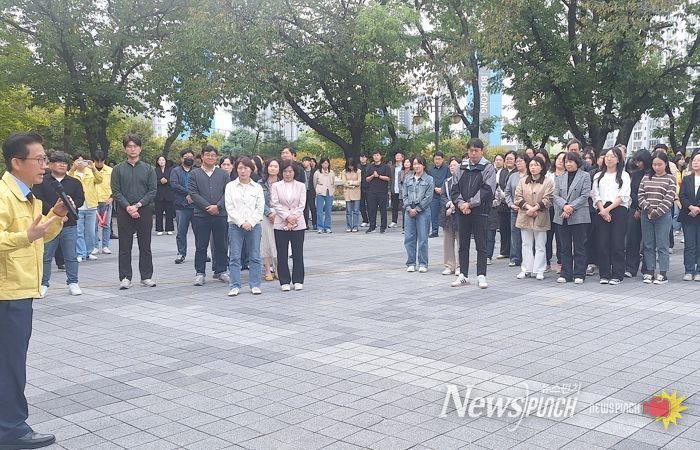 뉴스펀치 조평훈 기자 | 대구 달서구는 24일 구청사 일원에서 ‘재난대응 안전한국훈련’과 연계한 화재대피훈련을 실시했다.