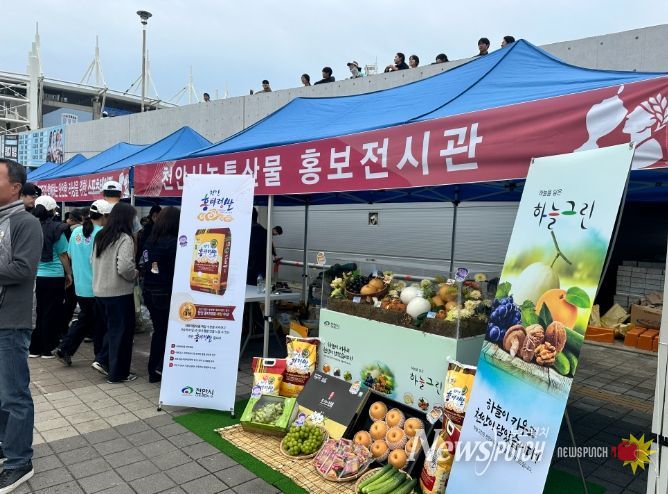 뉴스펀치 김길룡 기자 | 천안시는 지난 26일 천안종합운동장 일원에서 열린 ‘제4회 천안 이봉주 마라톤대회’에서 지역의 우수한 농특산물을 홍보했다.