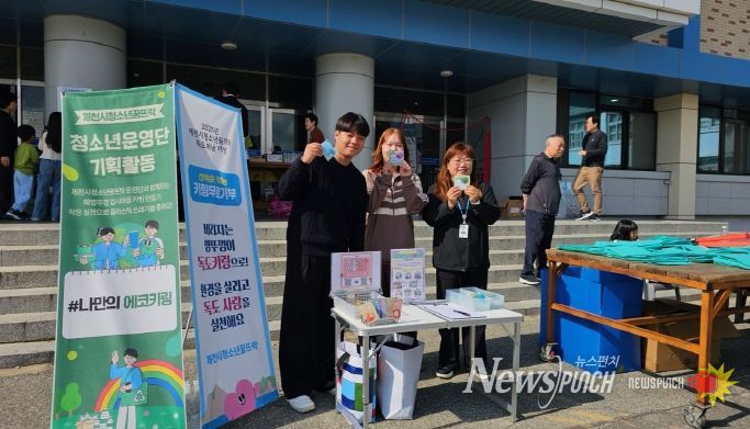 제천시청소년꿈뜨락 청소년운영단은 현장을 직접 방문해 자신들이 만든 독도 키링 100개를 기부하며 환경보호와 나라 사랑의 뜻을 전했다.