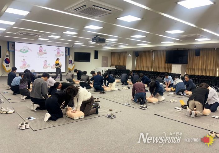 뉴스펀치 김길룡 기자 | 대전 유성구는 오는 31일까지 구청 전 직원 1,200여 명을 대상으로 심폐소생술(CPR) 등 응급처치 교육을 실시한다.