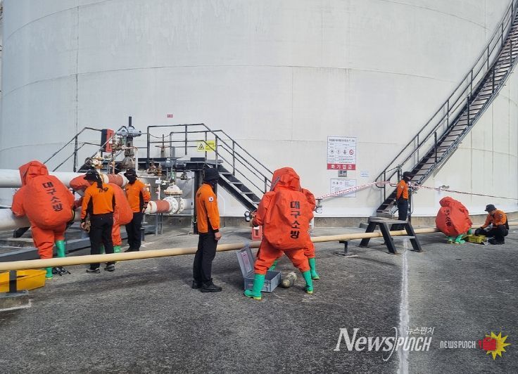 뉴스펀치 조평훈 기자 | 대구소방안전본부는 2025년 APEC 정상회의를 대비해 방사선 및 대량 위험물 누출 사고 대응 훈련을 실시했다.