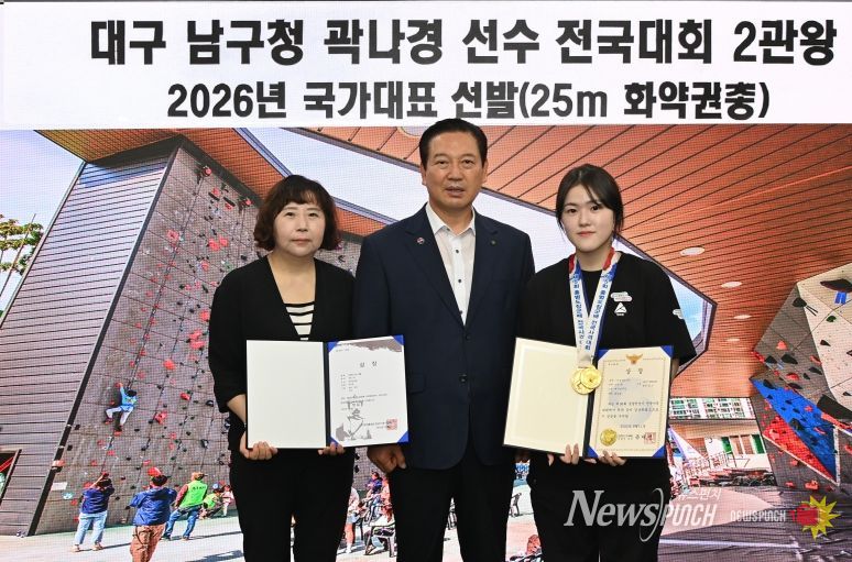 뉴스펀치 조평훈 기자 | 대구 남구는 남구 사격팀 소속 곽나경 선수가 2026년도 대한민국 사격 국가대표로 최종 선발되는 영예를 안았다고 밝혔다.