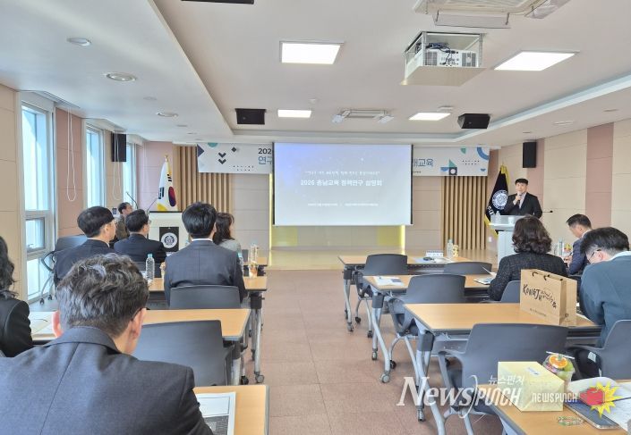 뉴스펀치 김길룡 기자 | 충남교육청은 27일, 국립공주대학교에서 도교육청·직속기관·교육지원청 소속 직원 50여 명이 참석한 가운데 ‘2026 충남교육 정책연구 설명회’를 개최했다.