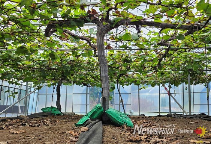 뉴스펀치 김길룡 기자 | 충북농업기술원(원장 조은희)은 최근 잦은 비와 함께 기온이 급격히 떨어지면서 포도나무의 생리적 스트레스가 커지고 있다며, 수확 후 관리에 각별한 주의를 기울여야 한다고 당부했다.