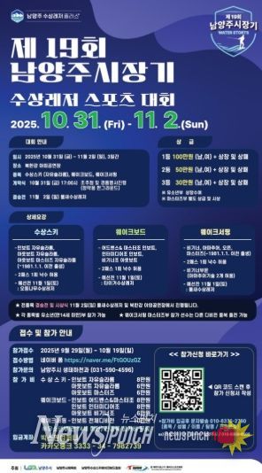 뉴스펀치 김길룡 기자 | 남양주시는 오는 10월 31일부터 11월 2일까지 3일간 화도읍 및 조안면 북한강 일원에서 ‘제19회 남양주시장기 수상레저 스포츠 대회’를 개최한다.