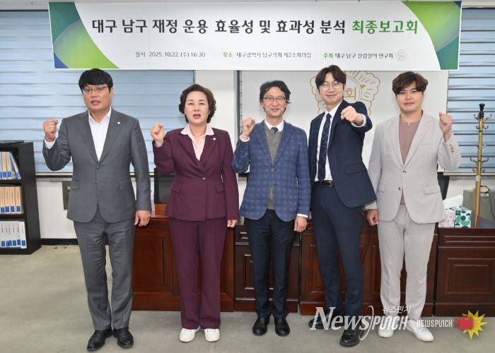 뉴스펀치 조평훈 기자 | 대구광역시 남구의회 의원연구단체 ‘대구 남구 살림살이 연구회’는 10월 22일 남구의회 제2소회의실에서 ‘대구 남구 재정 운용 효율성 및 효과성 분석 연구’ 최종보고회를 개최했다.