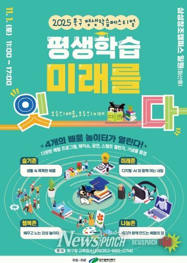뉴스펀치 조평훈 기자 | 대구 북구청은 오는 11월 1일 오전 11시부터 삼성창조캠퍼스(침산동) 야외무대 일원에서 '2025 북구 평생학습페스티벌'을 개최한다.