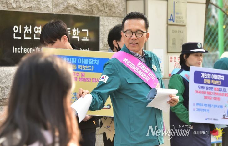 한편, 연수구와 연수경찰서, 유관기관 등이 합동으로 진행한 이번 교통안전 캠페인은 등굣길 청소년들을 대상으로 진행됐으며, 현수막과 전단지 배포 등을 통해 무면허 이용금지, 안전모 착용의 중요성, 킥보드 주차구역 등 전동킥보드 안전 수칙 등을 홍보했다.