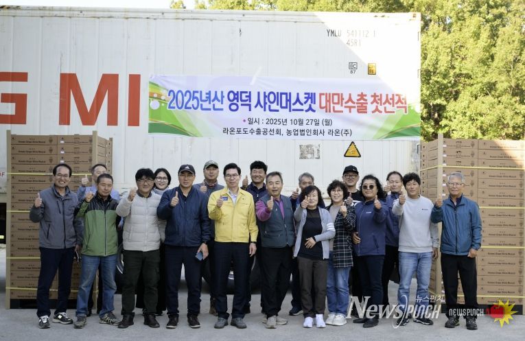 뉴스펀치 김길룡 기자 | 영덕군 뫼들내 포도작목반이 생산한 고품질 샤인머스캣이 지난 27일 올해 첫 대만 수출을 시작했다.