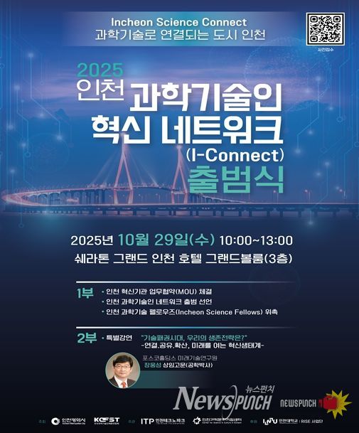 뉴스펀치 조평훈 기자 | 인천광역시는 10월 29일 쉐라톤 그랜드 볼룸에서 ‘인천 과학기술인 혁신 네트워크(i-connect)’출범식을 개최하고, 지역 과학기술 주체 간 협력기반 강화를 위한 본격적인 행보에 나섰다고 밝혔다.