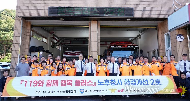 뉴스펀치 조평훈 기자 | 대구소방안전본부는 119시민안전봉사단연합회와 함께 추진하는 ‘119와 함께 행복플러스’(노후 소방청사 환경개선) 2호 사업을 완료하고, 10월 28일 강북소방서 태전119안전센터에서 현판식을 가졌다.