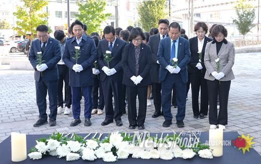 뉴스펀치 김길룡 기자 | 광주광역시 남구의회는 29일, 이태원 참사 3주기를 맞아 백운광장 양우내안애 앞 광장에서 추모행사를 개최했다.