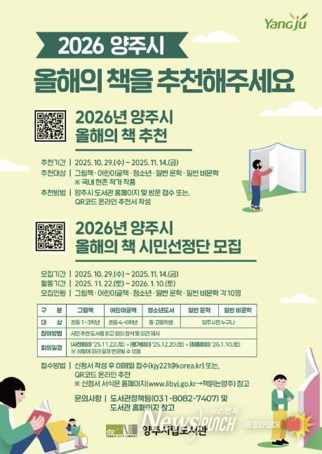 뉴스펀치 김길룡 기자 | 양주시가 11월 14일까지 2026년 양주시 『올해의 책』을 추천받는다.