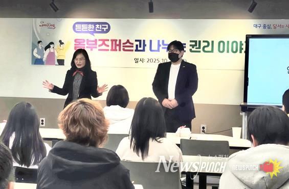 뉴스펀치 조평훈 기자 | 대구 달서구는 지난 28일 대구광역시 학교밖청소년지원센터에서 '아동권리 옴부즈퍼슨과 함께하는 권리이야기'를 열고 학교밖 청소년을 대상으로 한 아동권리 인식 및 자기보호 역량 강화 프로그램을 진행했다.