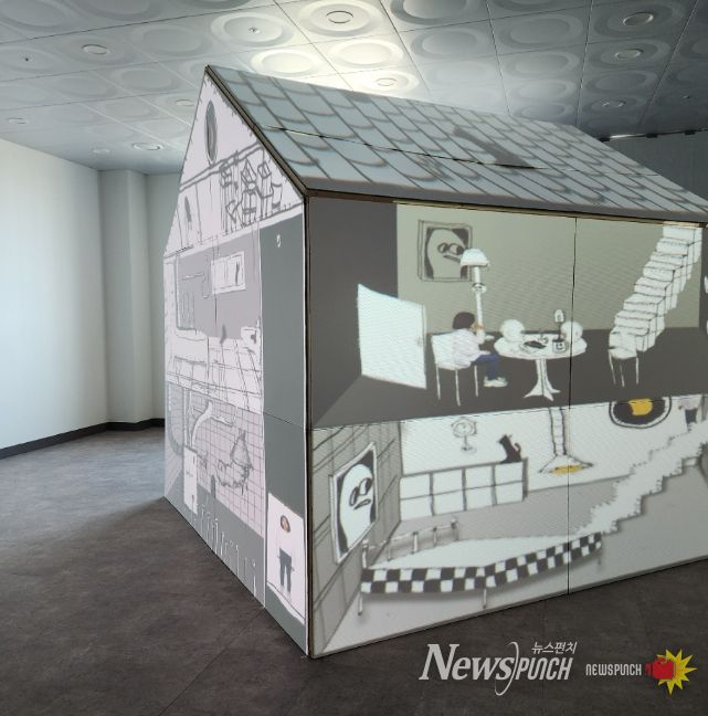 특히 집 모양의 설치작품에는 일상의 풍경과 인간의 감정이 디지털 영상으로 투사되어, 예술과 삶이 하나로 이어지는 듯한 독특한 감동을 전한다.