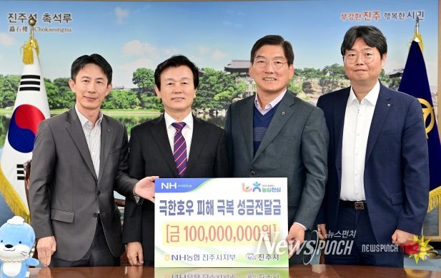 조규일 진주시장은 “어려운 시기에 지역의 아픔을 함께 나눠주신 NH농협 진주시지부에 깊이 감사드리며, 이번에 기탁된 성금은 피해주민 지원 등에 소중하게 사용 하겠다”고 밝혔다.