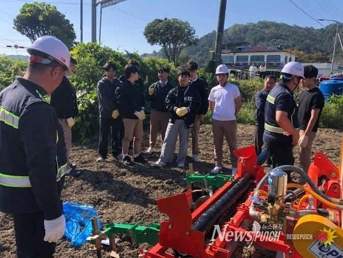 이번 교육은 학생들이 고성 지역 생태환경을 이해하고 미래농업의 지도자를 양성하기 위해 최신 농업기계를 활용하여 농작물의 파종을 위한 경운작업, 휴립피복작업 등 직접 농업기계를 조작 해보는 현장 맞춤교육 중심으로 진행이 됐다.