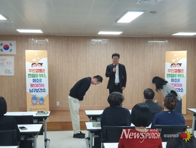 뉴스펀치 김길룡 기자 | 울산 남구보건소는 민원인을 대하는 태도와 의사소통 능력을 개선하기 위한 ‘주민감동 친절교육’을 보건소 2층 대회의실에서 실시했다고 30일 밝혔다.