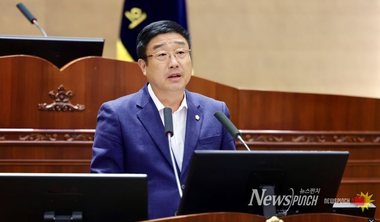 뉴스펀치 김길룡 기자 | 천안시의회 노종관 의원(국민의힘, 백석동)은 30일 열린 제283회 임시회 제6차 본회의 시정질문을 통해 집중호우 피해 복구, 신부문화공원 불법 노점상, 보도블럭 정비사업 등 시민 생활과 밀접한 현안을 점검하며 “현장 중심의 적극 행정”을 촉구했다.