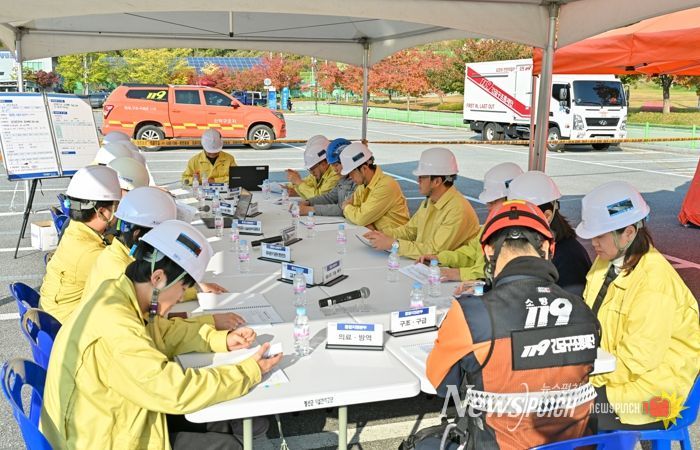 뉴스펀치 김길룡 기자 | 정선군은 지난 10월 31일 정선종합경기장 실내체육관에서 ‘2025년 정선군 재난대응 안전한국훈련’을 실시했다고 밝혔다.