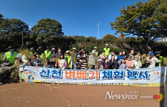 뉴스펀치 조평훈 기자 | 대구광역시는 11월 1일 신천 내 논에서 어린이들과 대구시 및 대구공공시설관리공단 직원들이 함께 가꾼 벼를 추수하는 체험행사를 진행했다.