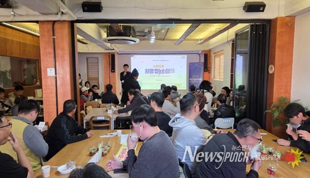 이런 치얼업 데이(CU데이)를 확장시켜 지난달 28일 오후 3시, 종로구 포레스트 구구에서는'도란도란 희망JOB談(잡담)'행사가 열렸다. 이번 행사는 노숙을 벗어나 민간기업 등에 취업한 이들이 한자리에 모여 직장생활 적응 경험을 나누고, 취업선배로서 후배인 구직자가 궁금한 부분을 이야기하는 자리로 자립과 자활의 희망을 전하기 위해 마련됐다.