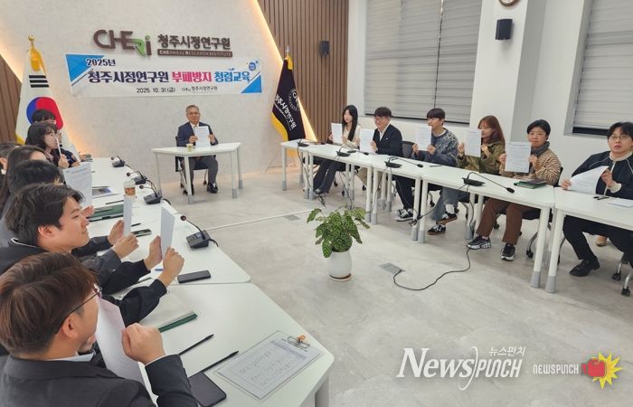 뉴스펀치 김길룡 기자 | 청주시정연구원은 지난달 31일 전 직원을 대상으로 ‘2025년 부패방지 청렴교육’을 실시했다.