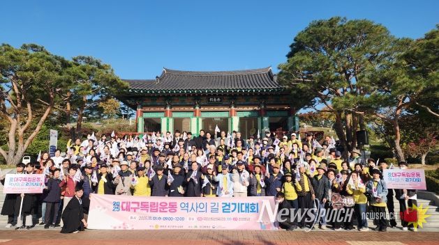 뉴스펀치 조평훈 기자 | 광복회 대구광역시지부(지부장 우대현)는 2025년 11월 1일 오전 9시 국립신암선열공원에서 출발하여 조양회관(광복회관)까지 걷는 ‘2025 대구독립운동 역사의 길 걷기대회’ 행사를 가졌다. 참가자들은 먼저 국립신암선열공원 단충사에 헌화, 분향한 후 우대현 지부장의 대회 개회 선포로 걷기에 나섰다.