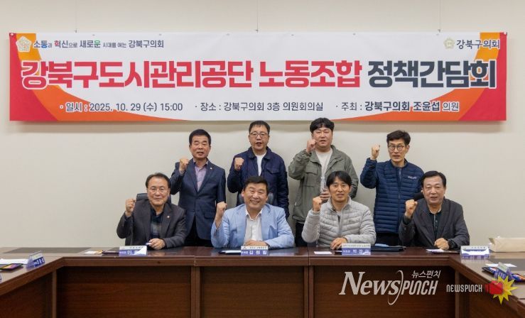 뉴스펀치 김완규 기자 | 서울 강북구의회 조윤섭 의원(수유1동, 우이동, 인수동)은 지난 10월 29일 강북구의회 의원회의실에서 민주노총 전국민주일반노동조합 강북구도시관리공단지회 임직원들과 함께 ‘강북구도시관리공단 노동조합 정책간담회’를 개최했다.