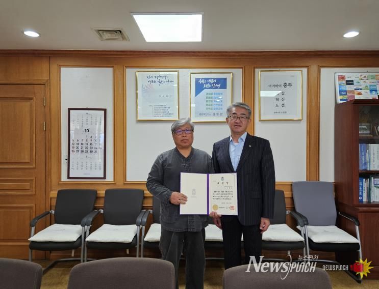 뉴스펀치 김길룡 기자 | 충주시는 도지정무형유산 이종성 사기장(만 67세)이 충청북도에서 주관한 ‘자랑스러운 모범도민’에 선정되어, 도지사 표창을 김진석 충주부시장으로부터 받았다고 3일 밝혔다.