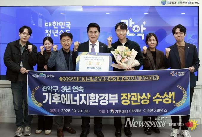 뉴스펀치 김완규 기자 | 관악구가 2025년 '폐가전제품 무상 방문수거 서비스 우수 지자체 경진대회'에서 동상인 기후에너지환경부 장관상 수상의 영예를 안았다.