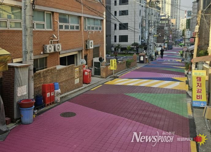 공사 전에는 갈라진 도로포장과 벗겨진 바닥 도색 등으로 낙후된 이미지를 줬다. 이는 곧 보행 안전과 골목 상권에도 좋지 않은 영향을 미쳤다.