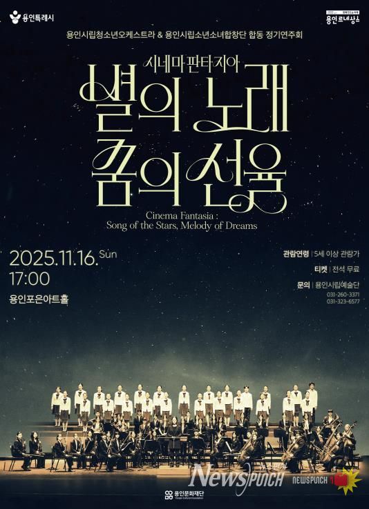 뉴스펀치 김길룡 기자 | (재)용인문화재단은 오는 11월 16일 용인포은아트홀에서 용인시립청소년오케스트라와 용인시립소년소녀합창단 합동 정기연주회 '시네마 판타지아 : 별의 노래, 꿈의 선율'을 개최한다.