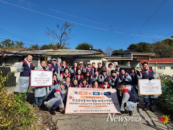 최기명 한국공인중개사협회 파주시지회장은 “공인중개사는 지역사회의 일원으로서 이웃과 온정을 나누는 것이 또 하나의 사회적 책임이라 생각한다”라며 “회원들의 마음이 담긴 이번 봉사활동이 이웃들에게 작은 힘이 되길 바라며, 앞으로도 꾸준히 나눔과 기부 활동을 펼치겠다”라고 말했다.
