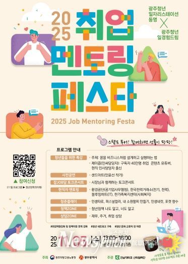 뉴스펀치 조은별 기자 | 광주광역시는 청년들의 진로 탐색과 취업 준비를 돕기 위한 ‘2025 취업멘토링 페스타’를 오는 5일 오후 1시부터 6시까지 시청 1층 시민홀에서 연다.