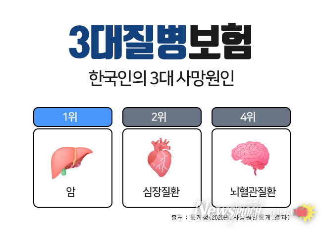 뉴스펀치 조은별 기자 | 흔히 3대질병이라 일컫는 암, 심혈관질환, 뇌혈관질환은 통계청 발표자료에 따르면 한국인의 주요 사망원인 중에서 3위 폐렴을 제외하고 1~4위를 차지하고 있으며, 이전부터 지금까지도 살면서 가장 먼저 대비해야 하는 치명적인 질병으로 강조되고 있다. 이러한 중대질병에 대비하기 위하여 상기 세가지 치명적인 질병을 집중보장하는 3대질병진단비보험을 많이 가입하고 있다. 3대진단비보험은 각각의 질병을 중점적으로 보장하면서도 가입자 특성에 맞는 특약을 추가함으로써 종합건강보험으로도 활용할 수가 있다.