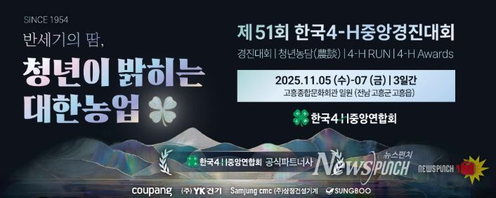 뉴스펀치 김길룡 기자 | 고흥군은 오는 11월 5일부터 7일까지 3일간, 고흥문화회관 일원에서 ‘제51회 한국4-H중앙경진대회’를 개최한다고 밝혔다.