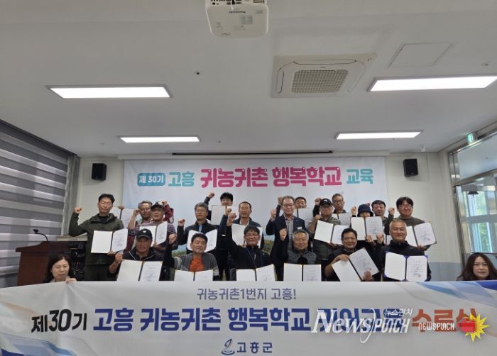 뉴스펀치 김길룡 기자 | 고흥군은 지난 10월 31일 남양면에 위치한 귀농귀촌 행복학교에서 제30기 귀농귀촌 행복학교 귀어교육 수료식을 성황리에 개최했다고 밝혔다.